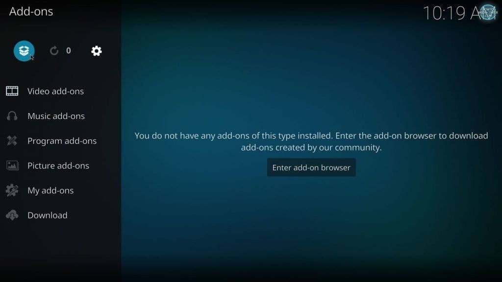 - Одете на Home Screen и од таму во Add-ons менито изберете Addon Installer.