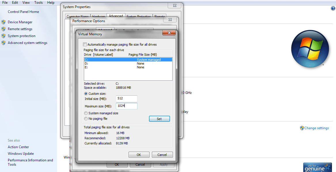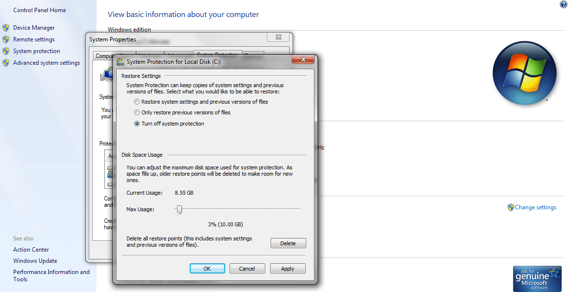Дополнително можете да ги исклучите/намалите Hibernation фајлот (во Command Prompt испишете “powercfg -h off” или “powercfg -h -size 50”), System Protection фајлот (Start/Computer/System properties/System protection/Configure во Win7, односно Settings/Control Panel/System and Security/System/ System protection/Configure во Win8), Page фајлот (Start/Computer/System properties/Advanced system settings во Win7 и Settings/Control Panel/System and Security/System/Advanced system settings во Win8, потоа во Performance делот Settings/Advanced/Change) и drive indexing опцијата (Local Disk (C:)/Properties и исклучете ја “Allow files on this drive to have contents indexed…” опцијата). Исто така можете да ја префрлите содржината на вашиот “User” фолдер од “C:” на “D:” или друга локација (изберете го фолдерот што сакате да го префрлите, пример Downloads и потоа Properties/Location/Move). Во главно овие работи се препорачуваат доколку користите SSD, затоа што ќе ви заштедат простор и непотребни записи.