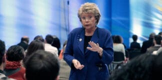 Поранешната еврокомесарка Вивијан Рединг го критикува исклучувањето на компаниите од изградбата...