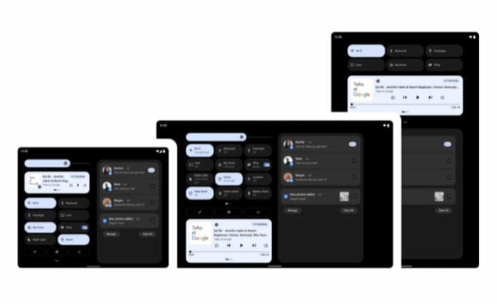 Уште во оваа фаза Google ги претстави главните промени кои се дел од Android 12L, па се гледа прикажувањето на центарот за известувања во два дела, односно на едната страна брзите прилагодувања, на другата известувањата.