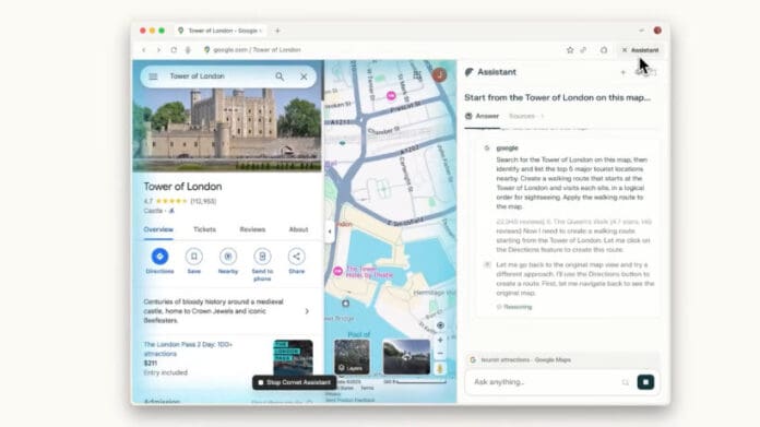 Како што би се очекувало, Comet е интернет прелистувач кој доаѓа со длабока интеграција на вештачката интелигенција. Тоа значи дека стандардниот пребарувач е наместен на Perplexity, достапен е и „асистент“ во форма на лента од десната страна, а вештачката интелигенција има пристап и до историјата на „сурфање“ со цел да овозможи уште повеќе функции.