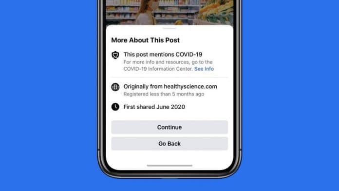 При воведувањето на известувања при споделување на стари новости, Facebook најави дека нешто слично планира и за статиите поврзани со COVID-19. Од оваа недела, кога корисниците ќе сакаат да споделат некоја статија поврзана со COVID-19, прво ќе им се појави дел со додатни информации пред да можат да продолжат со споделувањето.