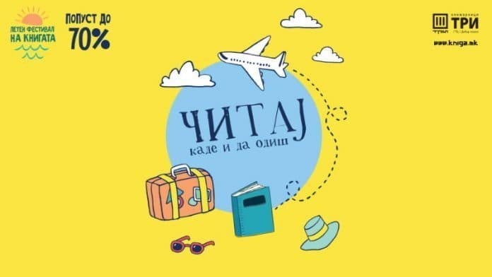 Издавачкиот центар ТРИ започнува уште едно издание на Летниот фестивал на книгата што секое лето го одржува во своите книжарници. „Читај… каде и да одиш“ е мотото на годинешното издание за кое ТРИ најавува многу нови изданија, најголеми попусти досега, промоции, наградни игри и акции што пријатно ќе ги изненадат сите љубители на добрата книга.