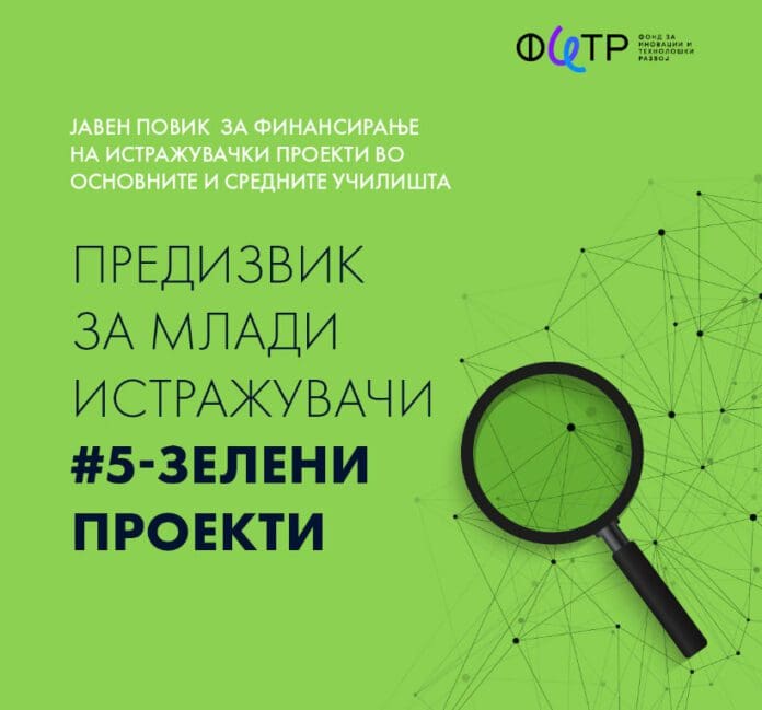 Фондот за иновации и технолошки развој денеска објави нов јавен повик „Предизвик за млади истражувачи 5 – Зелени проекти” наменет за ученици од целата држава, чија цел е поттикнување на креативното размислување кај младите и поддршка за истражувачки проекти базирани на научен метод.