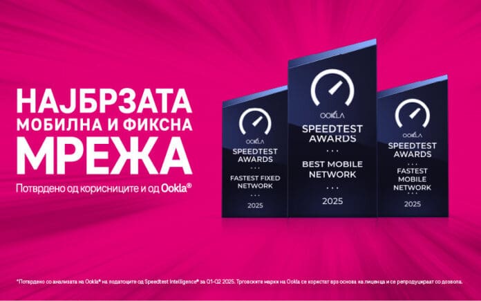 Македонски Телеком повторно ја освои престижната Ookla® награда за најдобра мрежа на пазарот. Резултатите од мерењата покажаа најголема брзина на мобилната и на фиксната мрежа и најдобра мобилна мрежа во првата половина на 2025 година.