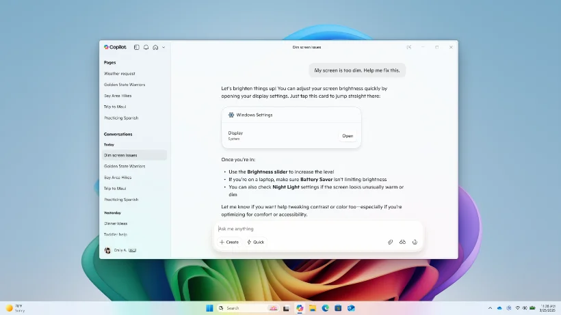 Со оваа нова можност, корисниците ќе можат да го прашаат Copilot како нешто да направат на нивниот компјутер, односно како да променат одредено прилагодување. Copilot, покрај деталното објаснување, ќе им овозможи и директен линк до делот од Settings апликацијата каде може да се направат потребните измени.