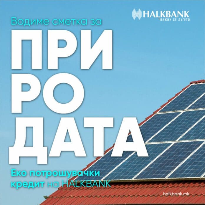 Новиот потрошувачки Еко-кредит на Халкбанк е наменет за физички лица и овозможува финансирање на проектите за енергетска ефикасност (ЕЕ), какви што се замената на енергетски неефикасните системи за снабдување со топлина и надградувањето на надворешната ѕидна и покривна инсталација, системите за греење и осветлување, како и поставување фотоволтаици на покривот за производство на струја.
