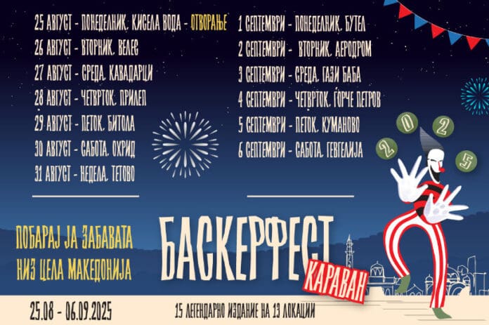 Во понеделник, од Расадник во скопската општина Кисела Вода, ќе започне Баскерфест 2025, обележувајќи го почетокот на јубилејното 15. издание на еден од највозбудливите и најпрепознатливи улични фестивали во Македонија.